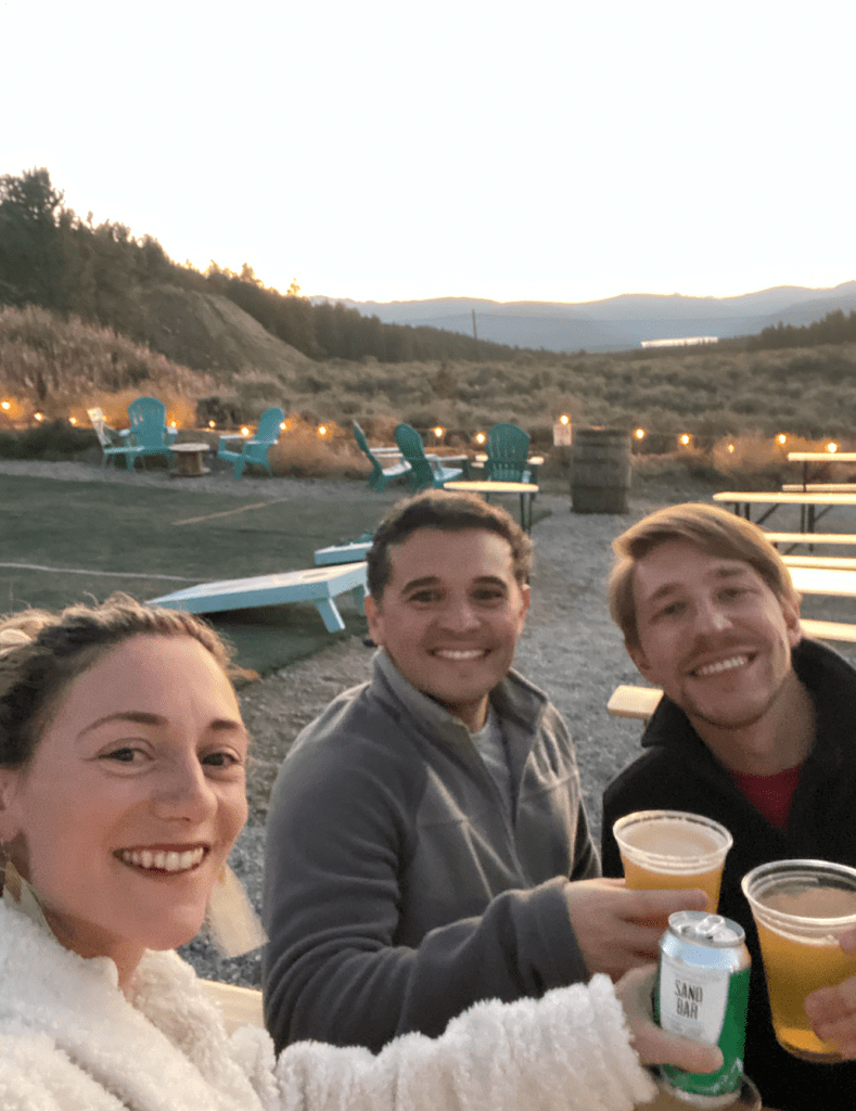 The next day was pure recovery. I slept late, then joined Anderson and Joaquin for a leisurely paddle on Twin Lakes, their first time on the water. We spent the afternoon drifting under a perfect sky, laughing until the chill of the wind chased us back to shore. That evening, we gathered at Ale Yak, a relatively new spot with fire pits, food trucks, and views of the sunset over Turquoise Lake. I toasted with cider, savored a rice bowl, and lingered with friends until closing, reluctant to let the night end.